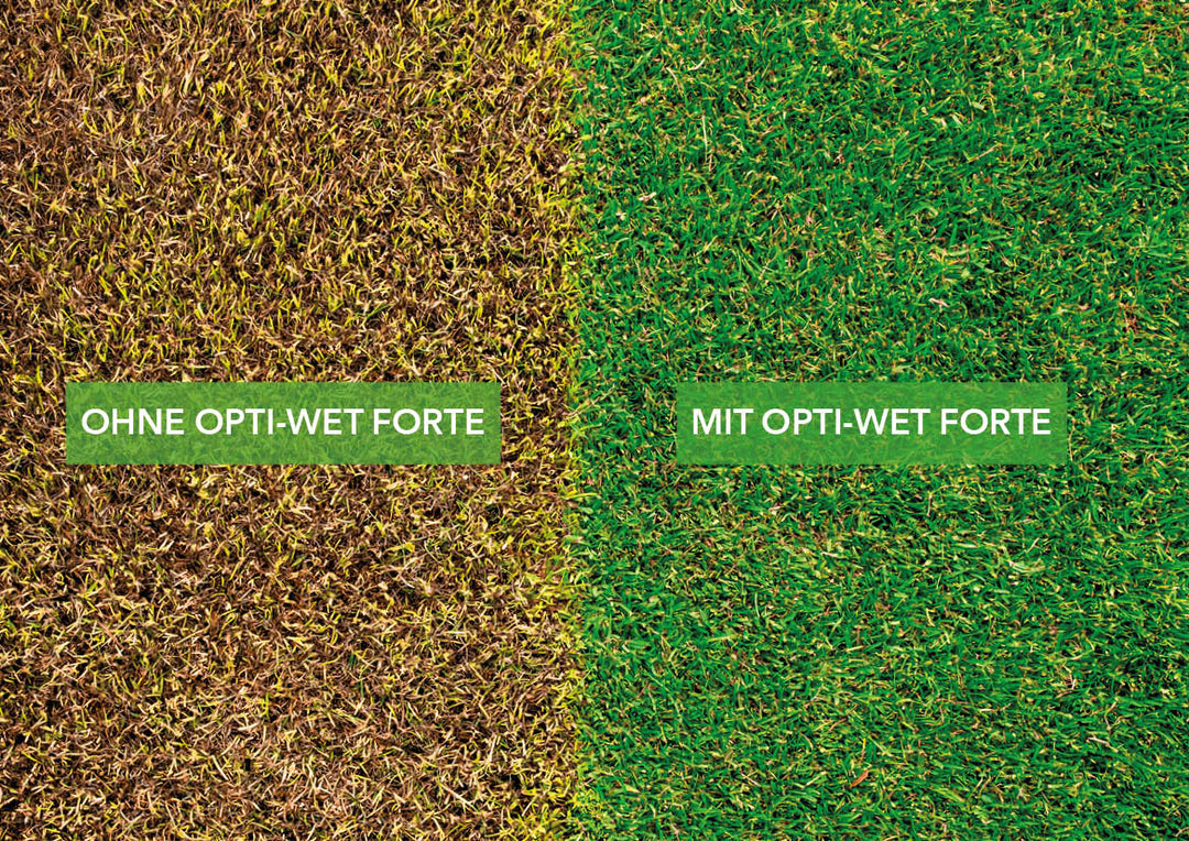 Aktives Wassermanagement mit OPTI-WET. Aktiv gegen Trockenstellen und Staunässe auf Rasenflächen. Zusätzlich reduziert OPTI-WET den Bewässerungsbedarf um bis zu 25% und bietet eine sehr gute Pflanzenverträglichkeit.