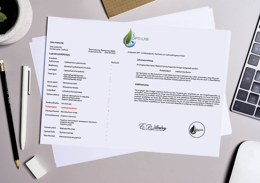 Das DNA Analyse-Set von OPTI-LAB bietet eine absolut zuverlässige Identifikation von Schaderregern bei Rasenkrankheiten.