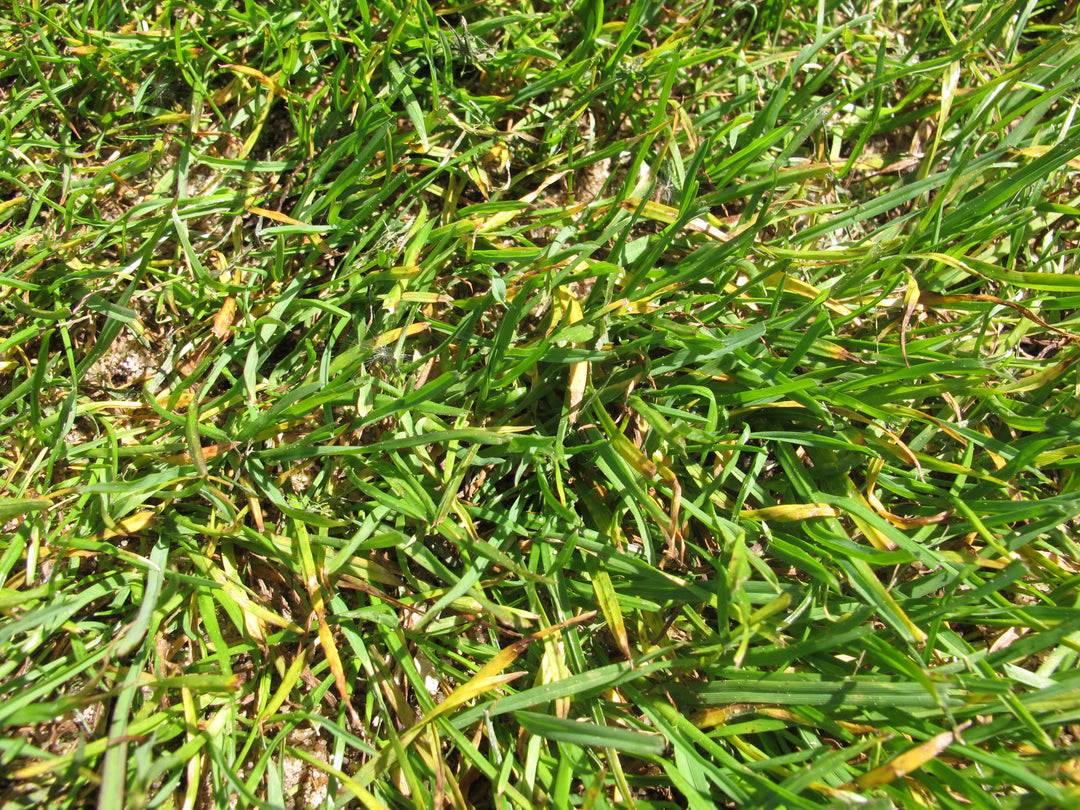 Symptome erkennen: Die Blattfleckenkrankheit zeigt sich zunächst durch kleine, dunkle Flecken auf den Blättern der Gräser, die in ihrer Färbung von braun über schwarz bis rotbraun variieren können. Im weiteren Verlauf vergrößern sich die Flecken und verschmelzen häufig miteinander, wodurch unregelmäßige, größere Bereiche geschädigten Pflanzengewebes entstehen. Typisch sind gelbliche bis hellbraune Ränder um die Flecken. Die betroffenen Blätter welken, verfärben sich gelblich und sterben schließlich ab, was zu sichtbaren Kahlstellen in der Rasenfläche führt. Infolgedessen kann das Wachstum des gesamten Rasens verlangsamt sein, und die Gräser wirken insgesamt geschwächt und vitalitätsarm.