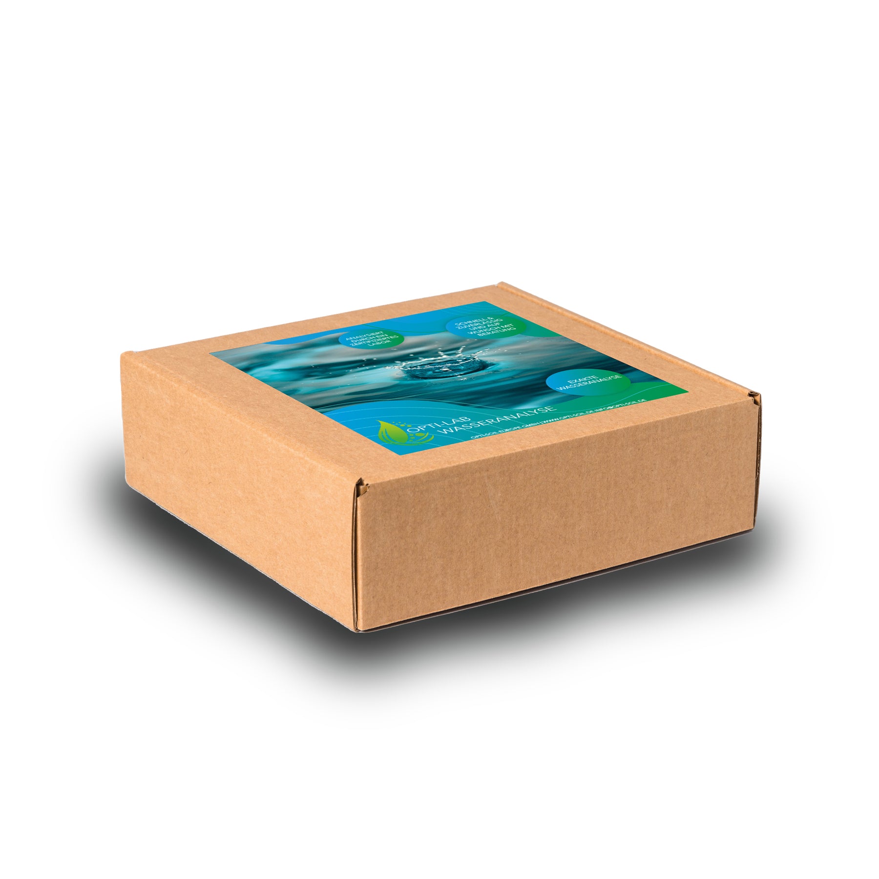 Schritt 3 - Probe verpacken: Verschließen Sie die Probeflasche nochmals gründlich außerhalb des Wassers und trocknen Sie diese ab. Verpacken Sie nun die Probeflasche in die Verpackung zurück und verschließen Sie den Karton.